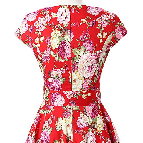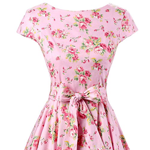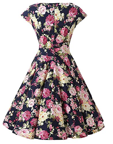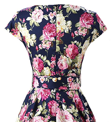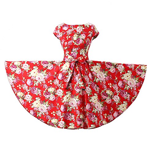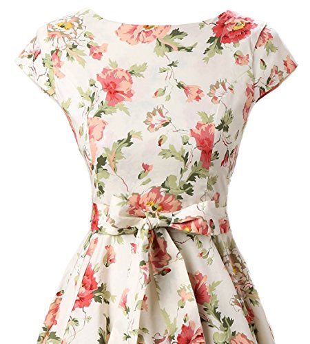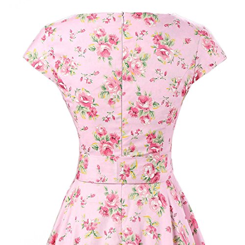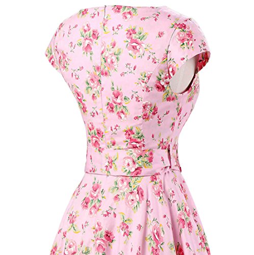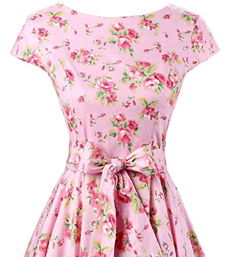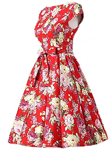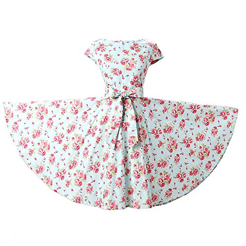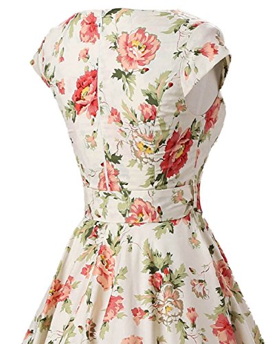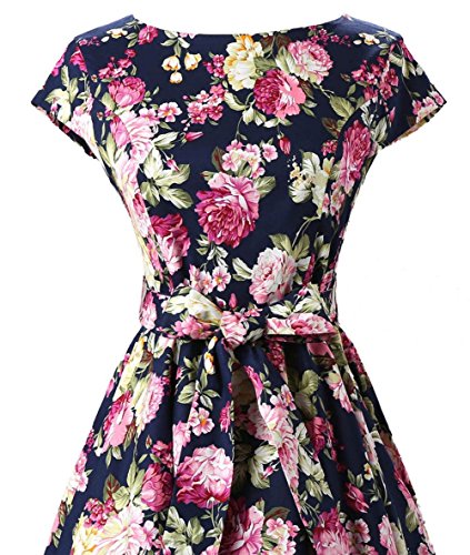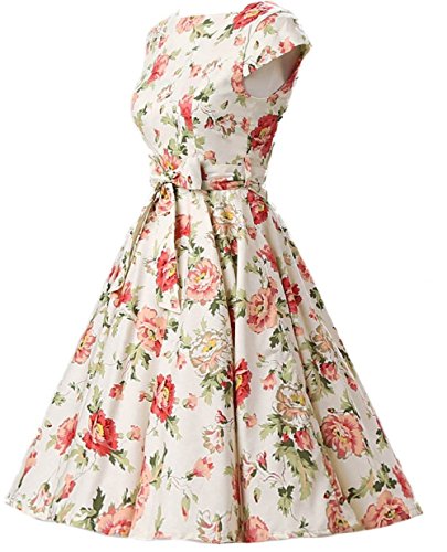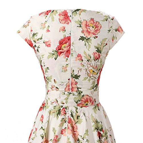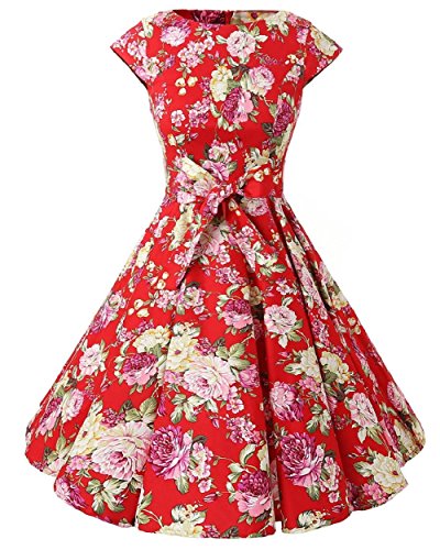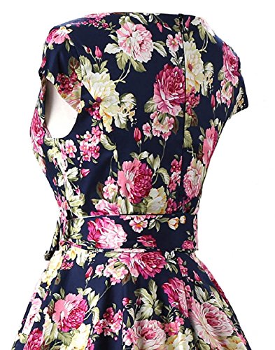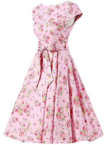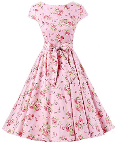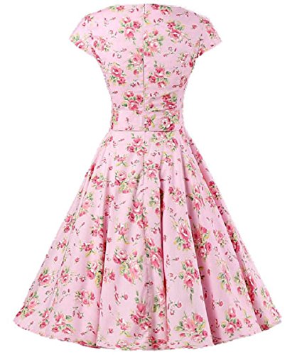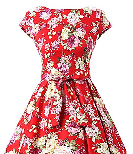 | Ensnovo Women Cap Sleeve 50s Floral Vintage Rockabilly Swing Cocktail Party Dress |