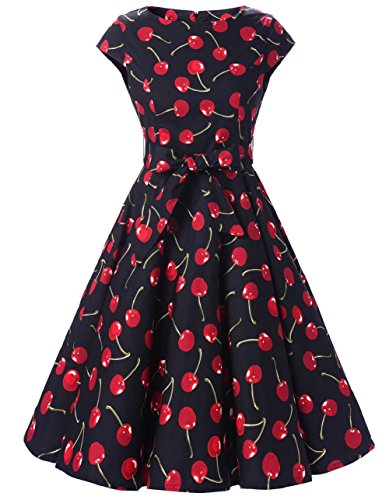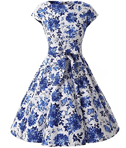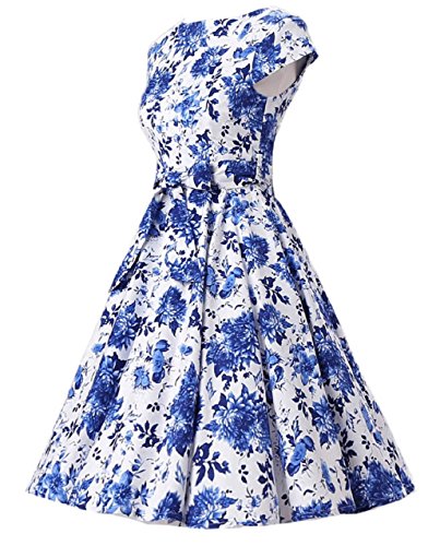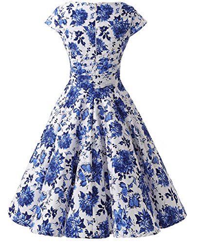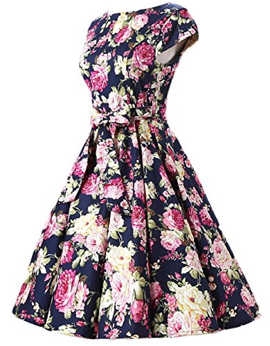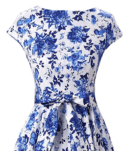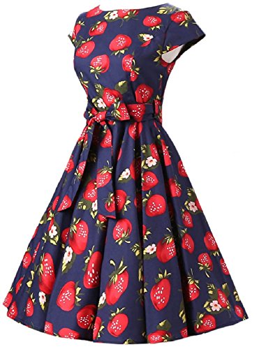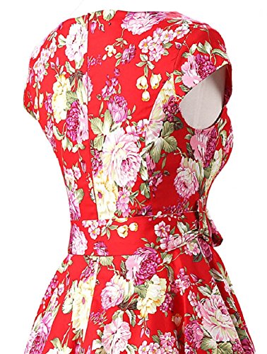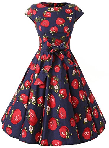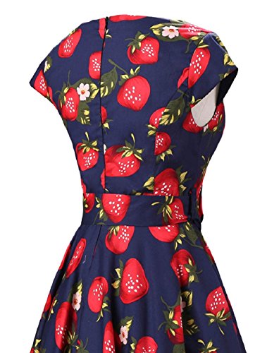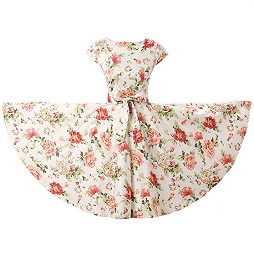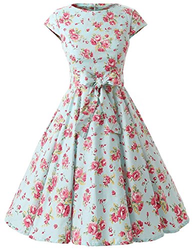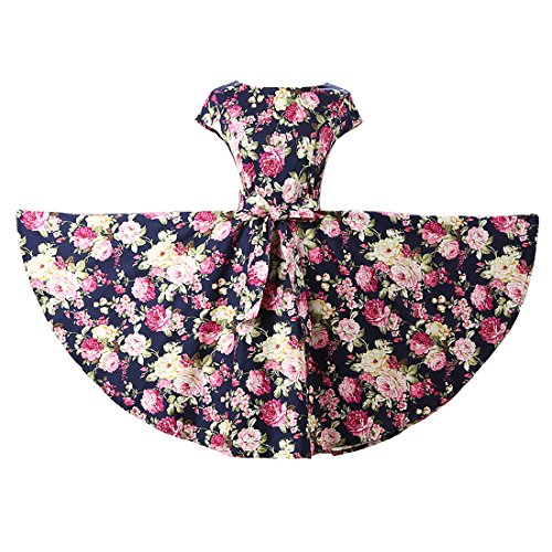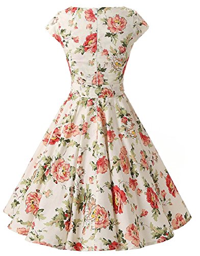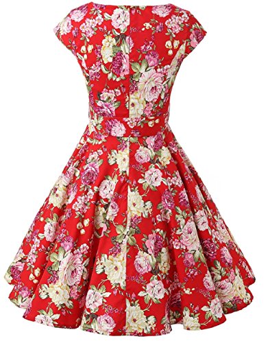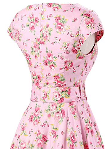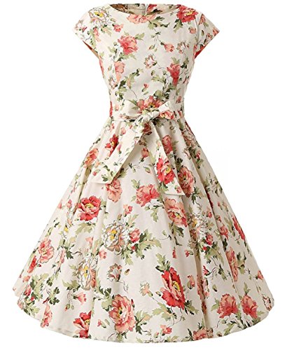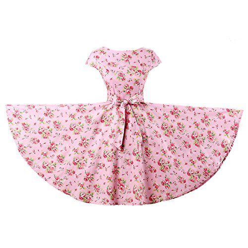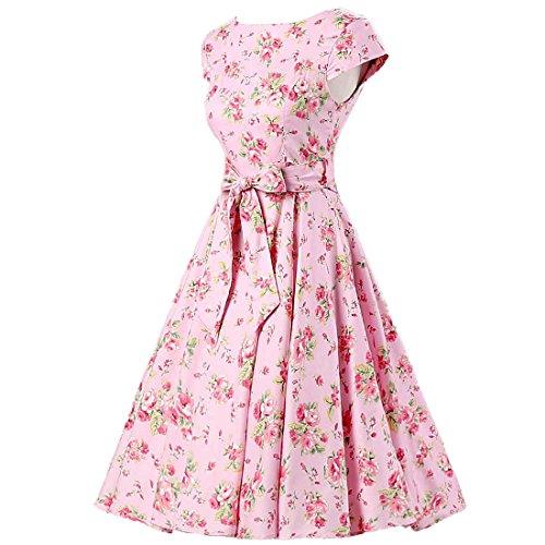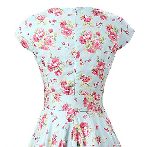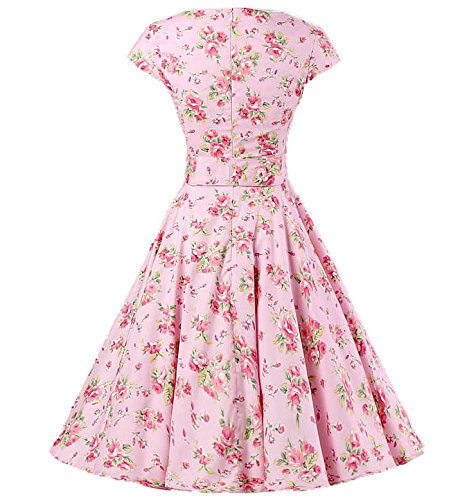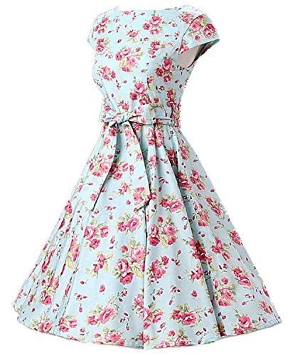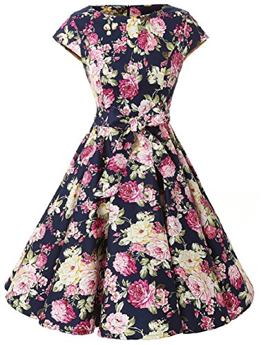 | Ensnovo Women Cap Sleeve 50s Floral Vintage Rockabilly Swing Cocktail Party Dress |