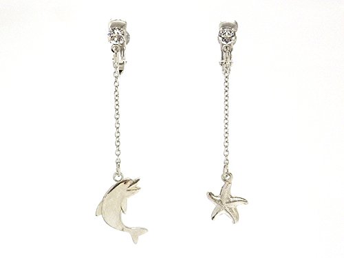 -. Title : イルカ、シェル、ヒトデなど海モチーフが揺れるネジバネ式イヤリング【イアリング】