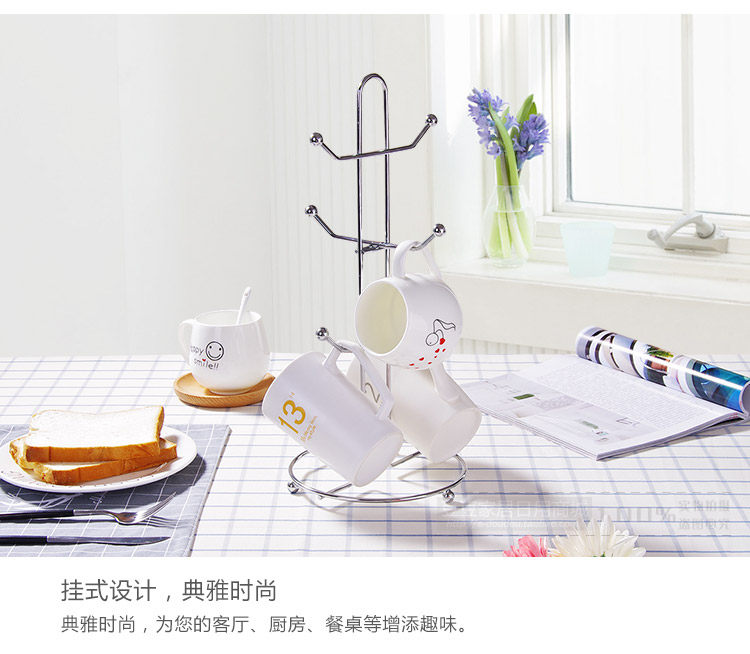 European style simple, metal texture, humanized design of the filter cup holder, will wash the glass, cup, and so on upside down, the natural water filter dry! Also as a storage cup of the shelves.