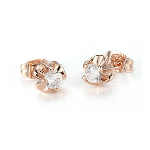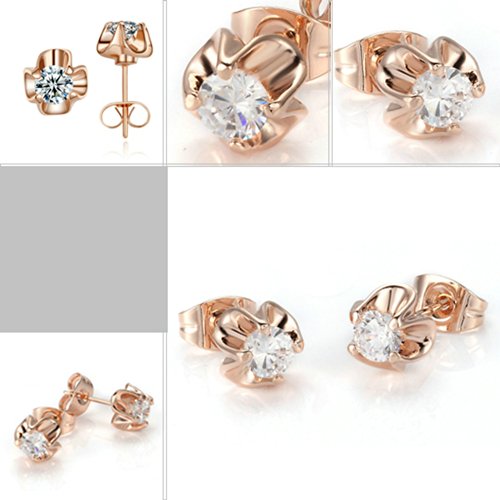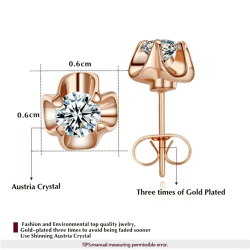 - Feature : Beautifully crafted cubic zirconia in the rose gold plated flower sparkling gracefully and beautifully. It brings an elegant and graceful look to any special occasion. / This pair of earrings is an excellent gift for anniversaries, graduations, birthdays, or just as a surprise to remind that special someone how much you care. Also it's a perfect accessory to your outfit. Lighten your wedding or engagement party. / This pair is 18k rose gold plated. The earring size is 0.23''*0.23''. / Shipped out in an exquisite jewelry gift box. Delivery time 7-15 days. / One year warranty to ensure you a perfect shopping experience.