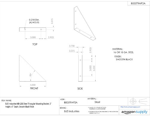 -. Title : BUD Industries MB-1266 Steel Triangular Mounting Bracket, 5" Height x 5" Depth, Smooth Black Finish