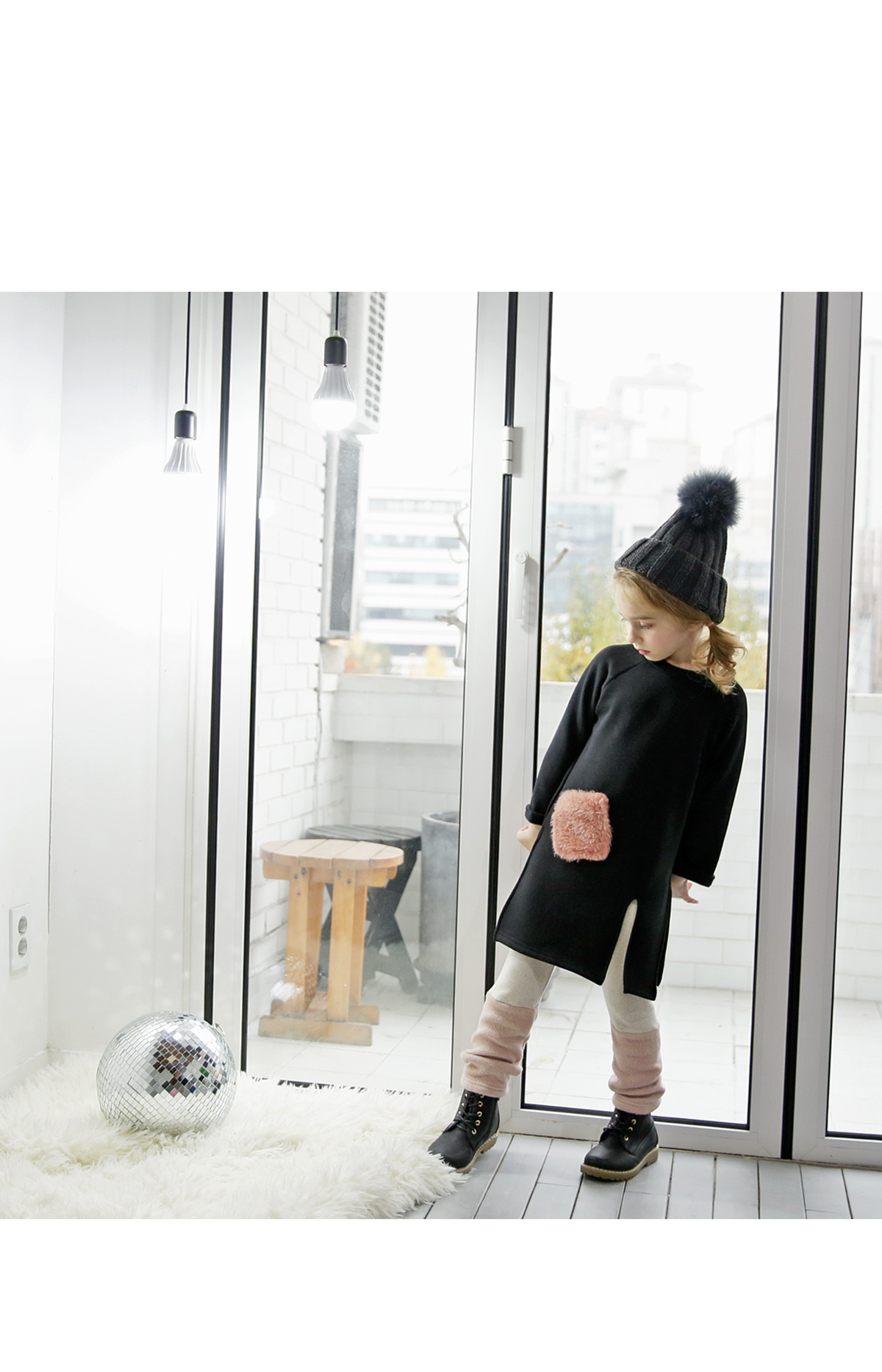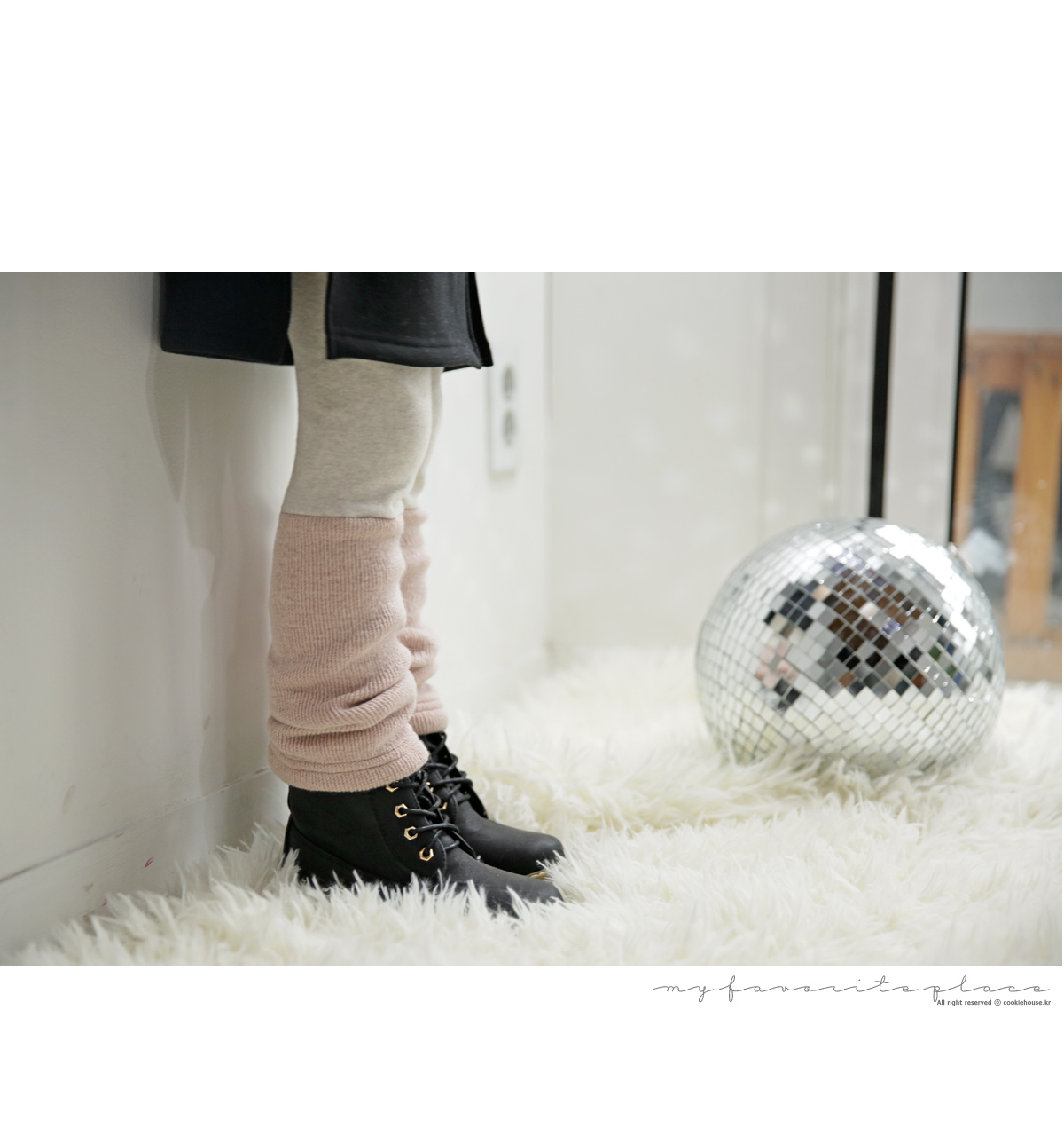 발목 라인 위로 따뜻한 니트 소재가덧대어진 포인트 배색 레깅스에요~