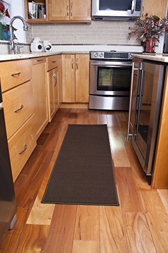 Studio : Ritz Publisher : Ritz Binding : Kitchen Product Description Product Description The Ritz Chocolate Brown 20” x 60” floor rug runner is perfect for kitchens, hallways, doorways, porches and bathrooms. The long rectangle shape fits directly under bath or kitchen cabinets or works perfectly down a hallway. Made from 100% looped olefin, with a non-skid latex backing. The rugs won't slip or move and are durable enough to withstand many machine washings. Line dry to extend the life of the rug.