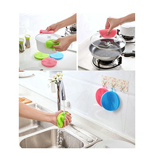 - Pack of 5 silicone dish sponge, blue, green, pink, purple, red.
