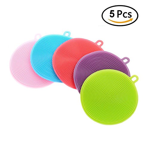 5 Pack Silicone Dish Sponge Washing Brush Scrubber Household Cleaning Sponges, HOMREE Antibacterial Mildew-Free Brushes