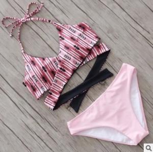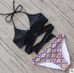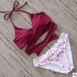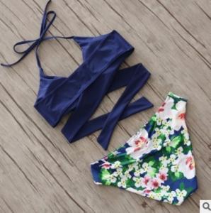 ビキニ カラフル ホルターネック 胸下クロス ボタニカル柄 エスニック プチプラ セパレート