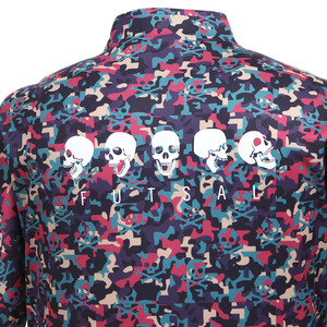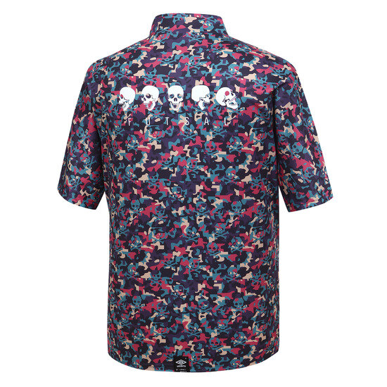 전판 스컬 프린트가 돋보이는 유니크한 디자인의 티셔츠입니다.
