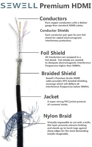 Sewell Direct SW-32000-15 Premium Grade HDMI Cable, High Speed with Ethernet, Male to Male, 4K, 1080p, 3D, HDMI 2.0, UHD, Shielded, 15-Feet