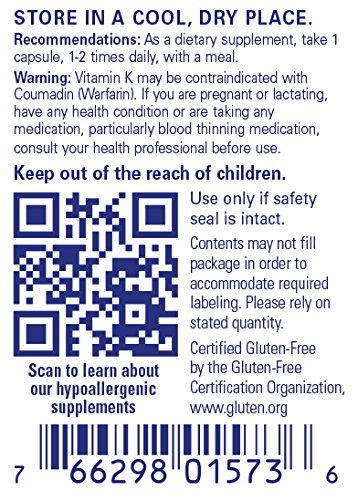 Vitamin K2 menaquinone-7 (MK-7) promotes healthy vascular calcium balance and cardiovascular function. In a systematic review involving 5 studies, higher intakes of vitamin K2 were associated with cardiovascular health. Research indicates that it supports the carboxylation of matrix Gla-protein (mg.P), a key protein involved in calcium balance. Unlike vitamin K1, which promotes bone health, MK-7 targets vascular tissue to support healthy arterial blood flow and vascular elasticity. In an observational study involving 564 postmenopausal women, higher intake of vitamin K2 was associated with calcium balance in the vascular tissue. Optimal serum levels of vitamin D are also important to maintain healthy calcium balance in vascular tissues, in part by supporting the activity of mg.P. Studies indicate that the combination of vitamin K and D provides synergistic support. Vitamin K supplementation may be contraindicated for those taking Coumadin/warfarin anticoagulant medication.*Feature