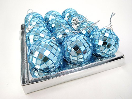Pack of 12 - 40mm Ice Blue Mirror Disco Baubles - Christmas Tree Decorations