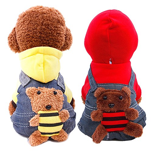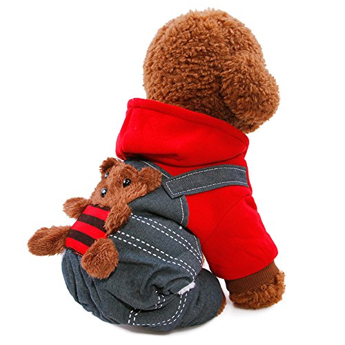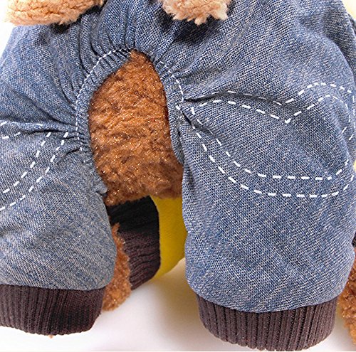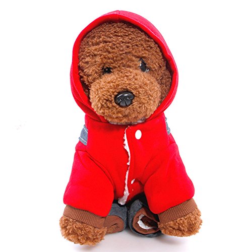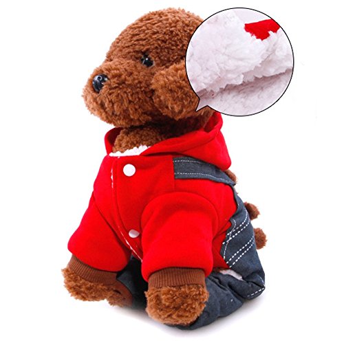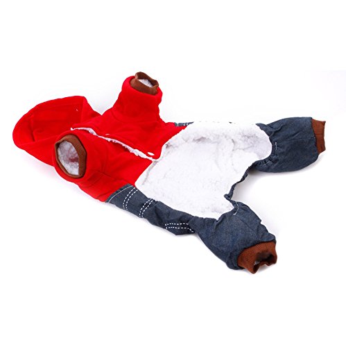 -. Feature : Size:Six colors for choose:XS,S,M,L,XL,XXL,suitable for lots of small dogs / Material:made of high quality Cotton and Denim,environmental friendly,comfortable,warm,durable and soft / Wraps your puppy in warmth during those nippy fall and winter days and features thick sweatshirt-style material plus a hood / Two-legged design,keep your dog stylish cute clean,snap fastener help easily take on and take off.Make your pet looks special and cool / Soft and cozy coat keeping your pet warm in cold days.Perfect for Daily wear,Special Occasions,Weekend Parties,Halloween,Christmas,Birthdays and Photo shoots