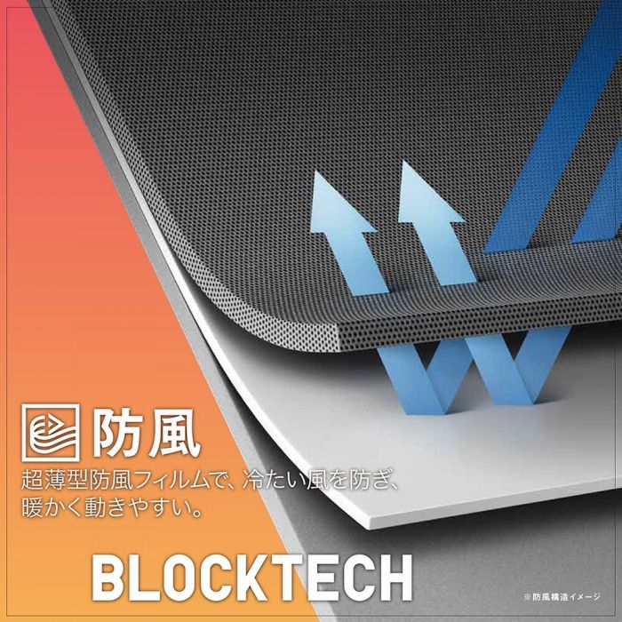 표땅의 소프트 터치 소재와 안감의 플리스(fleece)의 사이에,극박의 방풍 씨트를 사이에 둔3 층구조.