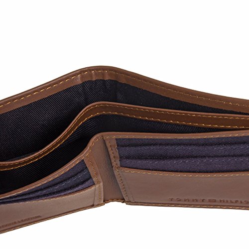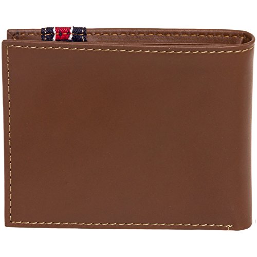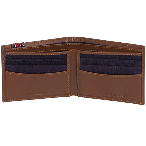 Classic styling for those who desire a classic look. Carry your cash in style with this Leather Fabric Striped Bifold Wallet from Tommy Hilfiger. Constructed of soft, genuine leather, this double billfold opens to reveal a spacious interior sure to keep you properly organized. 6 card slots, 2 slip pockets, and double, fully lined bill compartment give you plenty of options when storing your everyday necessities. The exterior features a bold fabric stripe in the iconic Hilfiger colors, so everyone knows who you carry. Presented in a gift box. Measures 4.37" x 3.6" x 1" (when closed).Feature