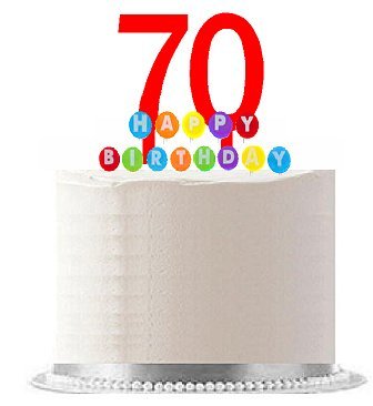 Item#070WCD - Happy 70th Birthday Party Red Cake Topper & Rainbow Candle Stand Elegant Cake Decoration Topper Kit