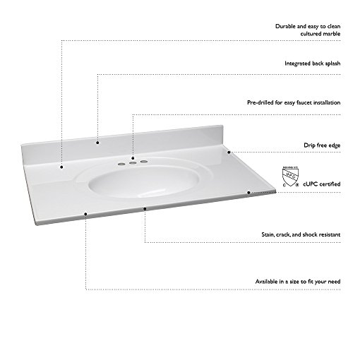 Design House 551069 Marble Vanity Top/Single Bowl, White/White, 31-Inch by 19-Inch
