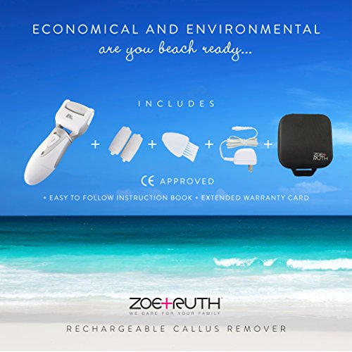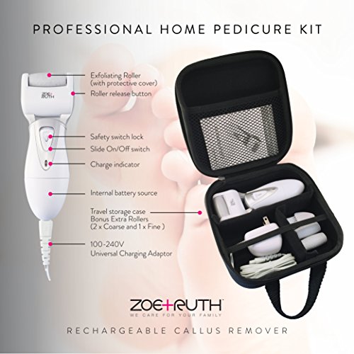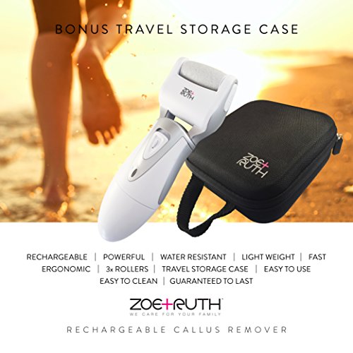 Electric Callus Remover Rechargeable Pedicure Foot File tool by Zoe+Ruth for Dry Cracked Dead Skin on your Heels and Feet. International Charger, 3...