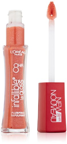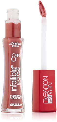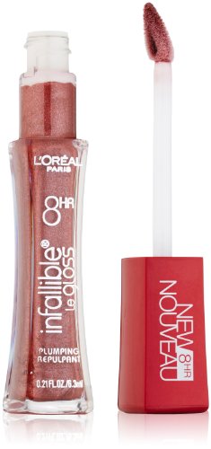 Now, get plumper lips, long-wearing color and incredible shine for 8 hours in one easy step with our improved formula. Infallible Plumping Gloss gives your pout a voluptuous new look. A pleasant plumping experience. Pain-free. No injections. Just gorgeous, fuller-looking lips.Feature