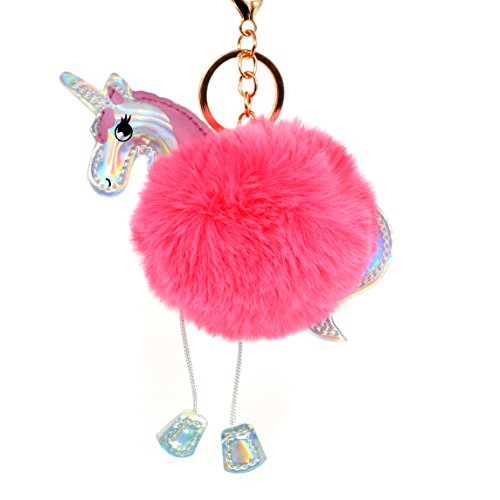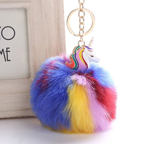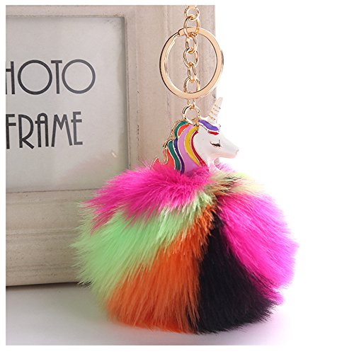 Product DescriptionSpecifications:Diameter: 3.5inch/9cm?Total Length: 6.7inch/17cmMaterial: Plush Faux Fur AlloyA golden key ring on the top, you can pin it on bag or car easilyFashion unicorn fur ball design, make you more charming and beautifulUsage:A unique accessory that organizes your keys or clip it to your bag, purse, backpack, etc0