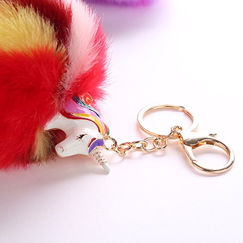 (Joya Gift)/Accessories/Wallets, Money Key Organizers/DIRECT FROM USA/Cute Rainbow Pom Unicorn Keychain for Girls Kids Gold Metal Faux Fur Ball Keyring