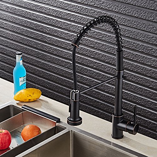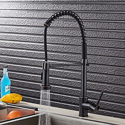 JinYuZe Modern Single Hole Kitchen Faucet with Pull Out Spray in Antique Black