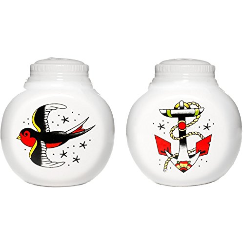 Sourpuss Anchor & Sparrow Salt and Pepper Shakers White