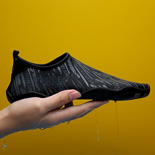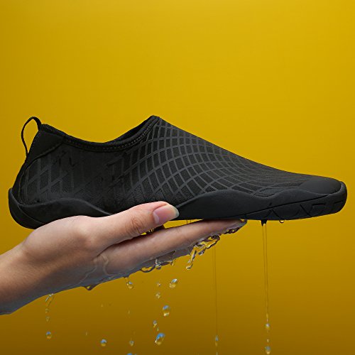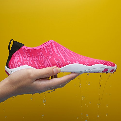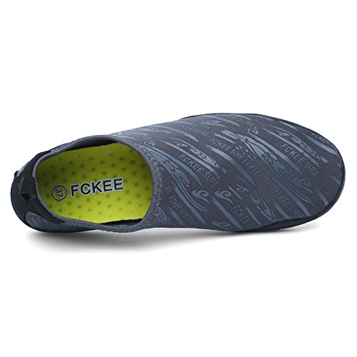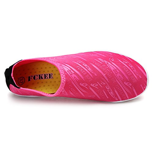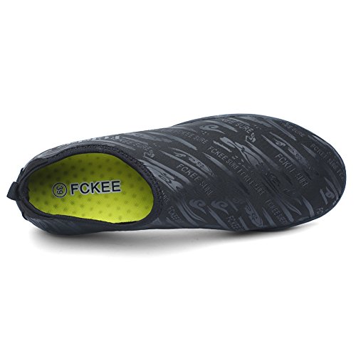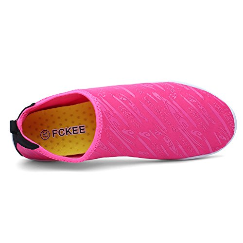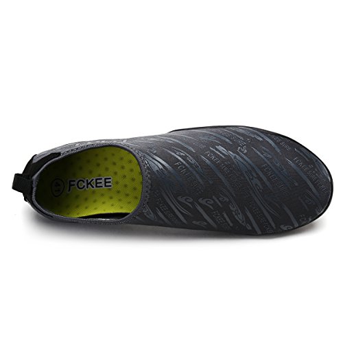 Comfortable, versatile, durable and affordable,these aqua shoes protects your feet from injuries and punctures that allows you to enjoy a fun day of swimming, surfing, lounging in the pool, wake-boarding, kayaking, or any other water sports. Conveniently, you don't even have to remove them to go into the water, thanks to the synthetic fabrics upper and sturdy polymer sole, which don't weight you down in the water but offer you with comfortable, fast-drying protection. Slip on the FCKEE Aqua Socks in this summer!