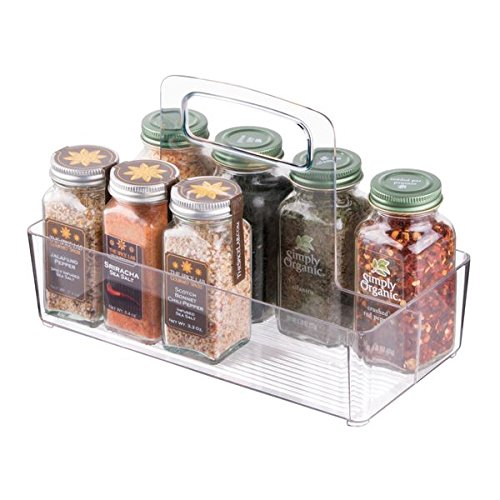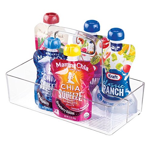 InterDesign Linus Pantry Refrigerator Cabinet Organizer Tote with Handles for Kitchen-Clear Small, Two Compartment-Vertical