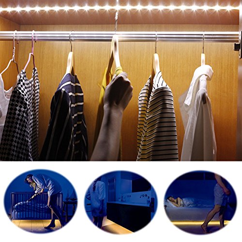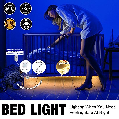 Under Bed Light, YMing Motion Activated Flexible LED Strip Sensor Night Light Kit with Automatic Shut Off Timer For Bedroom, Wardrobe, Hallway,Crib (1.5M/4.9ft) Warm White