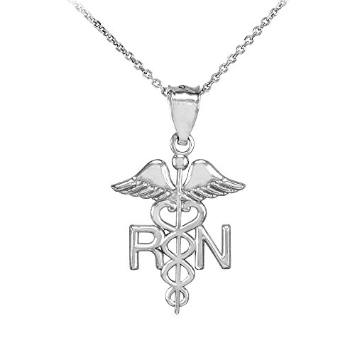 -. Binding : Jewelry -. Brand : American Heroes -. Department : womens -. Feature : nursing occupational acronym RN in block initial letters with the caduceus medical alert symbol as backdrop / finely crafted pendant necklace charm in genuine 14 karat white gold in high polish / comes with free special gift packaging / made in the USA yet offered at factory direct jewelry P.R.Ice / ships from the manufacturer directly to the customers -. Label : Claddagh Gold -. Manufacturer : Claddagh Gold -. Model : CM784NWH -. MPN : CM784NWH -. PartNumber : CM784NWH -. ProductGroup : Jewelry -. ProductTypeName : FASHIONNECKLACEBRACELETANKLET -. Publisher : Claddagh Gold -. Studio : Claddagh Gold -. Title : Polished 14k White Gold Caduceus RN Charm Registered Nurse Pendant Necklace