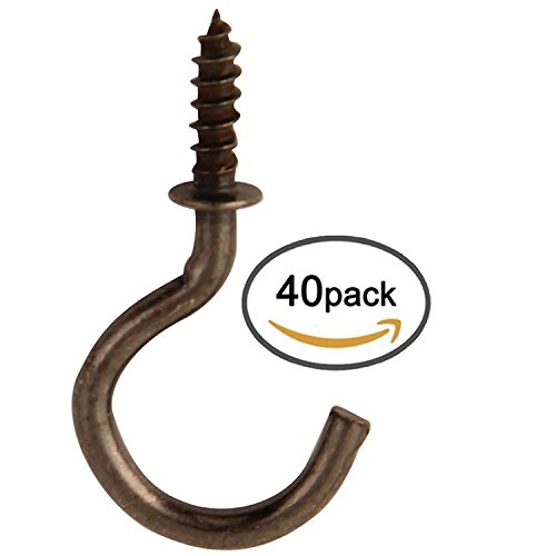 7/8 Inches Antique Brass Plated Ceiling Screw Hooks Bronze for Hanging 40PCS (black)