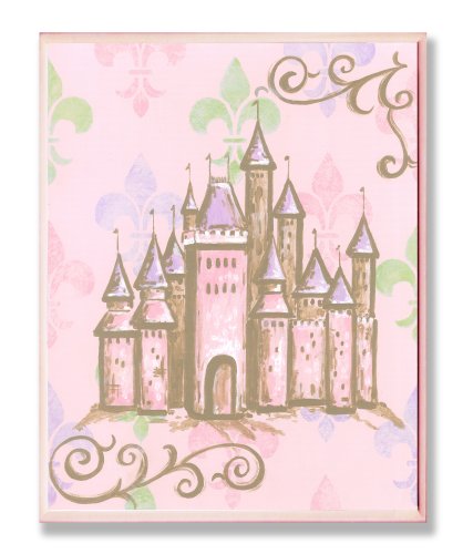 The Kids Room by Stupell Castle with Fleur de Lis on Pink Background Rectangle Wall Plaque