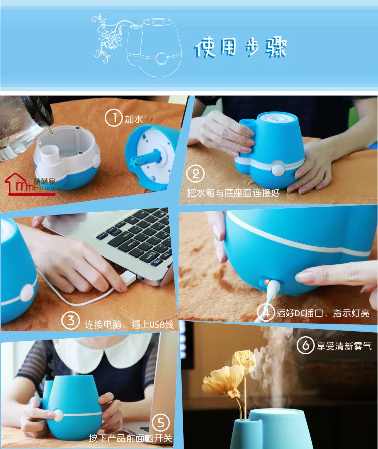 5. Can add a few drops of aroma in water or vinegar, can have scented or sterilization effect;Add a few drops of toilet water, more can drive midge and ease the children nasal congestion.