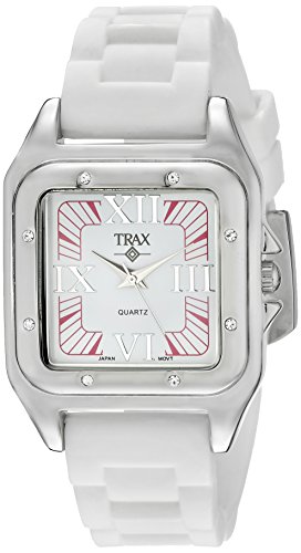 Trax Women's TR5132-PW Posh Square White Rubber Pink and White Dial Watch