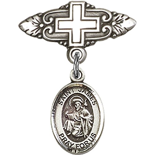 -. Title : Sterling Silver Baby Badge with St. James the Greater Charm and Badge Pin with Cross 1 X 3/4 inches