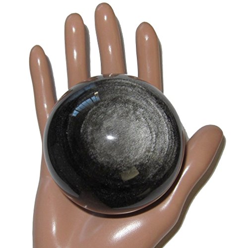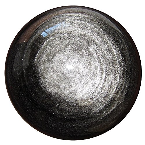 Your sphere is made from obsidian, which is volcanic glass. It appears black in normal lighting, with some white dimples and snowflake markings natural to obsidian. When placed in direct sunlight or very bright lighting, the sphere reveals wonderful silver sheen sparkles, with eye formations on both sides. One of a kind protective sphere hand picked by Satin Crystals for you. Receive this exact stone pictured when you order from Satin Crystals.