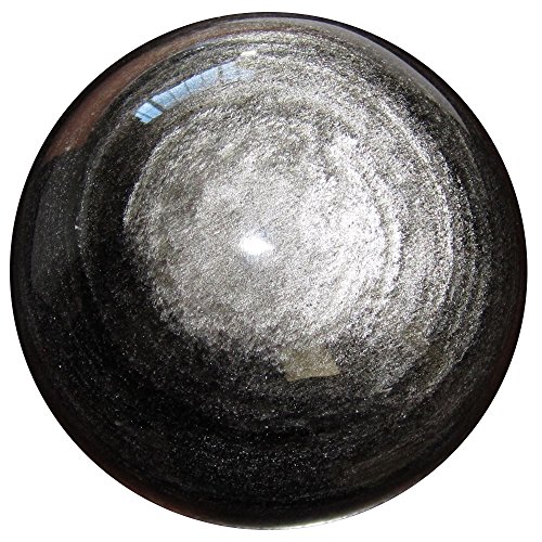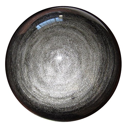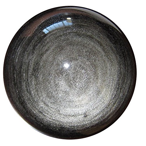 Obsidian Ball Silver 11 Volcanic Glass Sheen Stone Feng Shui Space Energy Cleanser Stone 2.6"