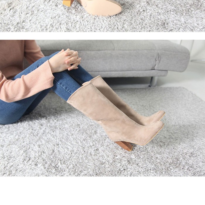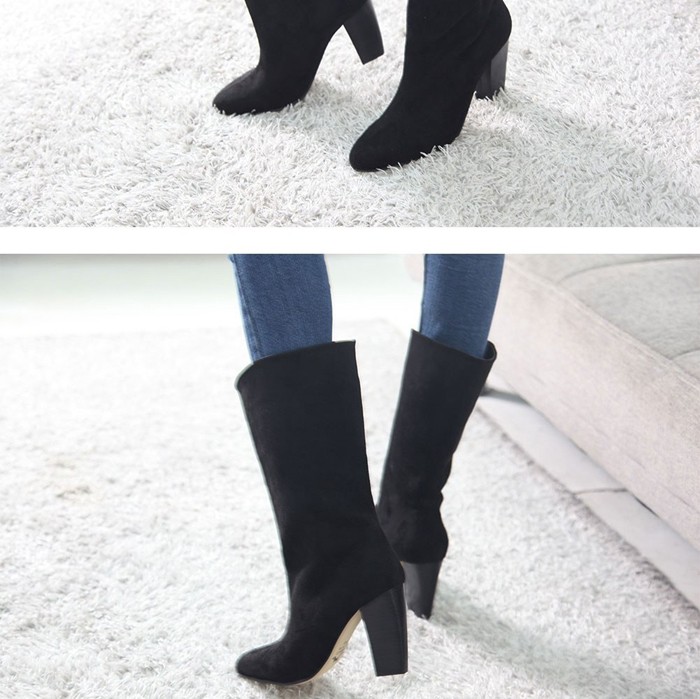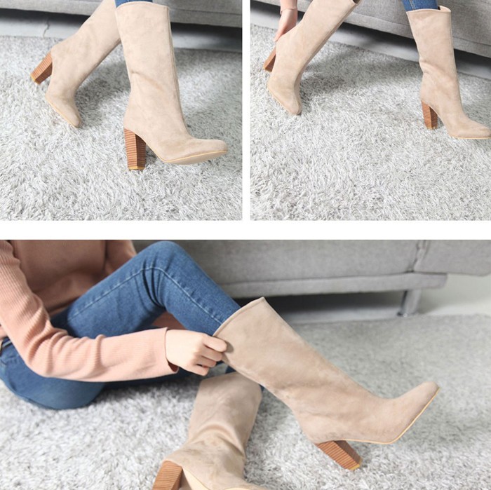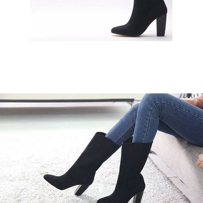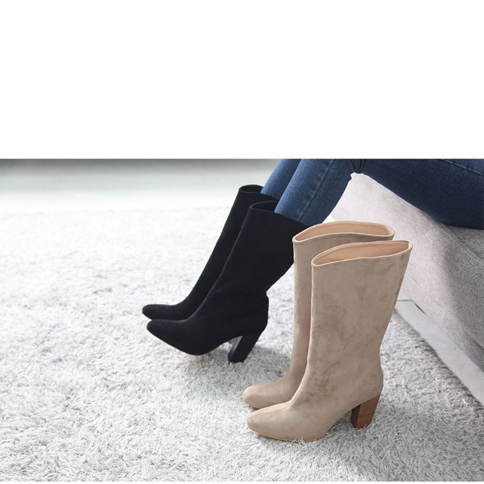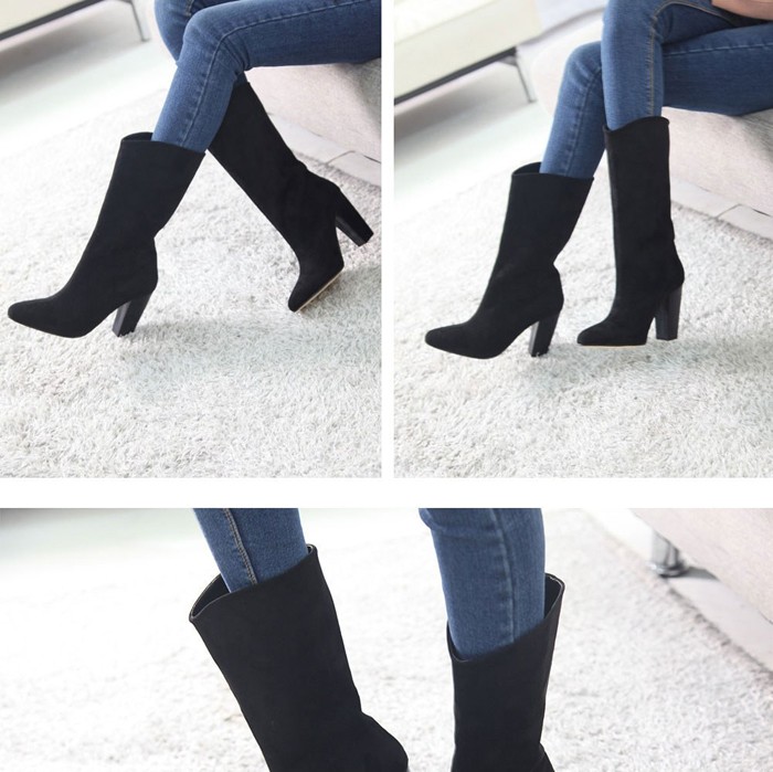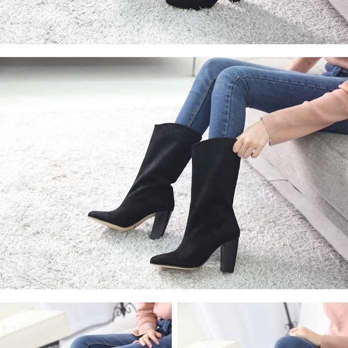商品名:ミドルブーツ レディース チャンキーヒール 太ヒール スエード調 ポインテッドトゥ 2017 秋冬 ファッション 靴 婦人靴