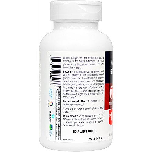 ReduceTM Is Formulated With The Enzyme Blend GlucoreductaseTM To Slow The Absorption Rate Of Glucose Into The Bloodstream. Cinnamon Extract, Zinc And Chromium Are Also Included To Help The Body's Cells Absorb And Utilize Glucose In A More Efficient Way.Combined With A Healthy Diet And Lifestyle. Reduce May Help Maintain Blood Sugar Levels Already Within The Normal Range.