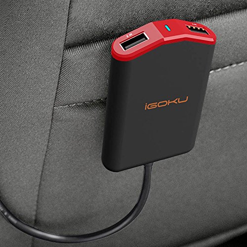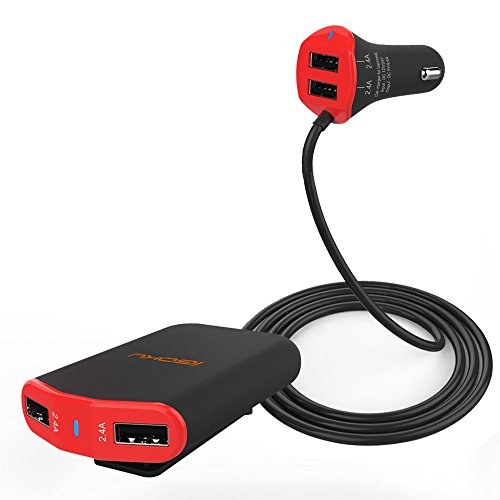 - Front / Back Seat Charge. There are four 2.4A USB charging port, 2 for the front seat and another 2 separate USB charging port for the back seat. With the six-foot extendable cable offering more than enough line to clip to a backseat car pocket. Every one has the charging options on a long road trip