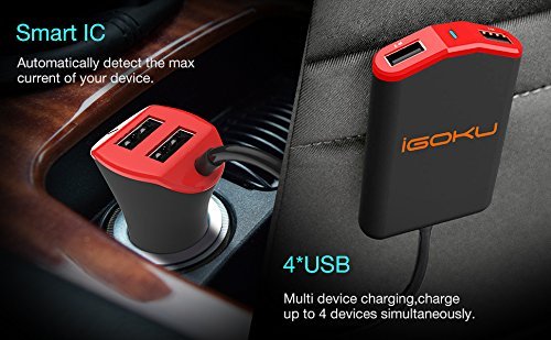 Car Charger, iGOKU 48W 9.6A 4 Ports USB Car Charger for Front / Back Seat, Quick Charge with Smart Identification for iPhone X 8 7 Plus, iPad Pro Air 2 mini, Galaxy S7 S6 Edge, Note, Nexus, HTC & More