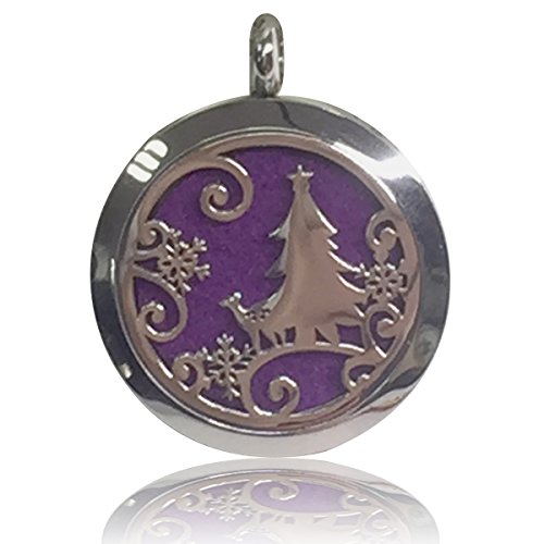 SHAMAKE Air Freshener Aromatherapy Essential Oil Diffuser Christmas Tree Shaped Pendant Locket Jewelry Stainless Steel Locket,6 Refill Pads (Random color)With Gift Bag (Christmas tree)