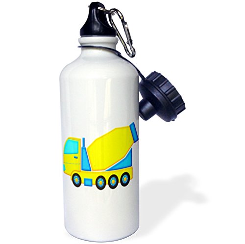 3dRose Cute Boys Blue and Yellow Cement Mixer Truck Graphic Sports Water Bottle, 21 oz, White