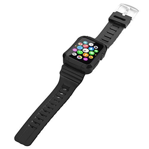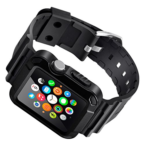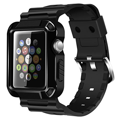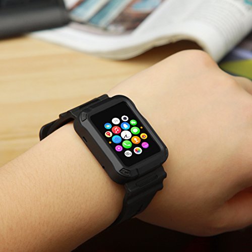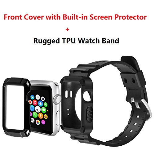 Apple Watch Case Series 1 Series 2, iitee 42mm Universal Full Armor Case and Band Strap with Screen Protector - Black