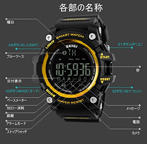 Ommda 맨즈 손목시계 방수 스포츠 워치 LED 디지탈블루tooth 보수계-페도미터 활동량계 칼로리 착신 전화 SMS APP 통지 시계 리모트 카메라 IOS/Android스마트폰대응