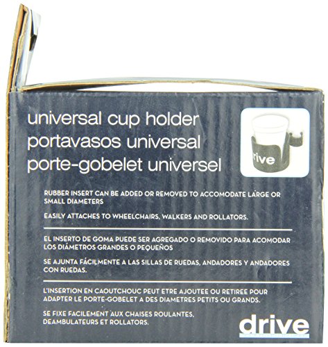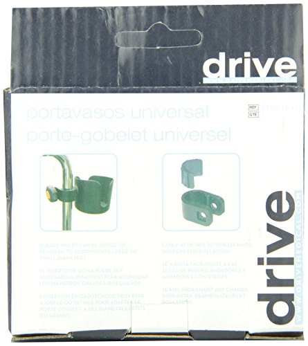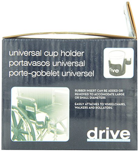 Take a refreshing drink with you on your daily jaunts without the worry of spills. The universal cup holder affixes firmly to a variety of mobility devices and swivels to keep your drink level. The cup holder clamp comes with a removable rubber insert, allowing it to fit on virtually any size tubing. This convenient accessory is a great addition to your walker, rollator, wheelchair, or transport chair. Easy to install; simply place the u-shaped clamp around the pole and thread the tightening screw through the holes! Drive Medical's Universal Cup Holder is just what you need to keep a drink with you during your busy day.