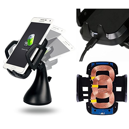 ZeroEdge® Qi Wireless Car Charger Dock 3-Triple Coil Qi Enabled Windshield Dashboard Car Mount Holder with Wide Charging Area Wireless Charger For Qi-Enabled Devices