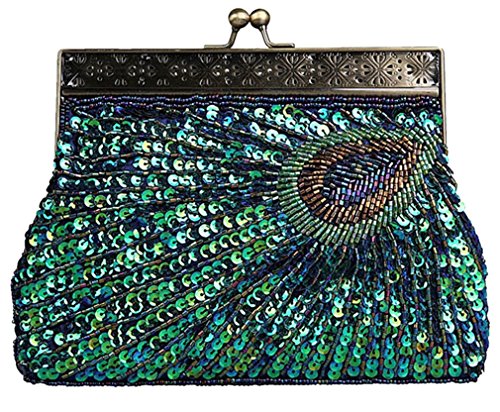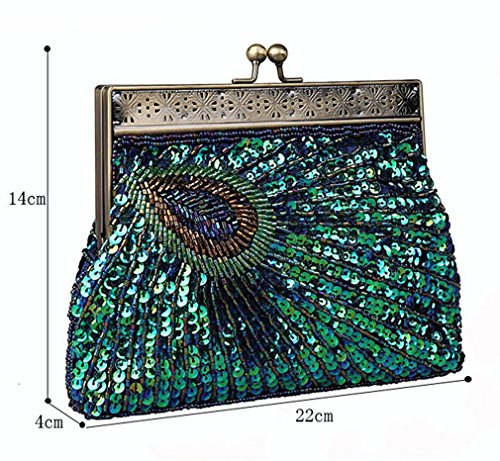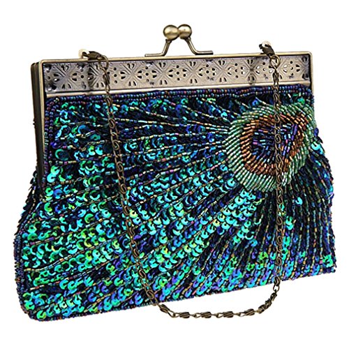 Bywen Womens Sequined Peacock Pattern Purse Party Clutch Shoulder Bags