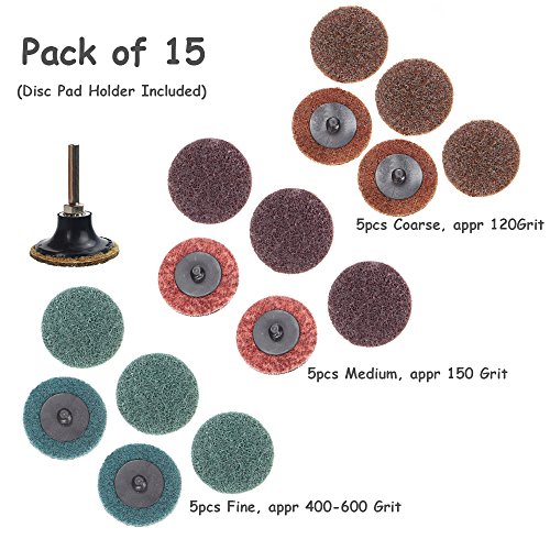 Yakamoz 15pcs 2 Inch Roll Lock Surface Conditioning Sanding Disc with Roloc Disc Pad Holder, Quick Change R-Type Discs | Fine Medium Coarse Grit