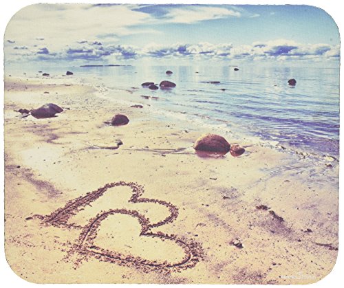 Double Hearts Marked On The Ocean Beach Thick Mousepad by Atomic Market